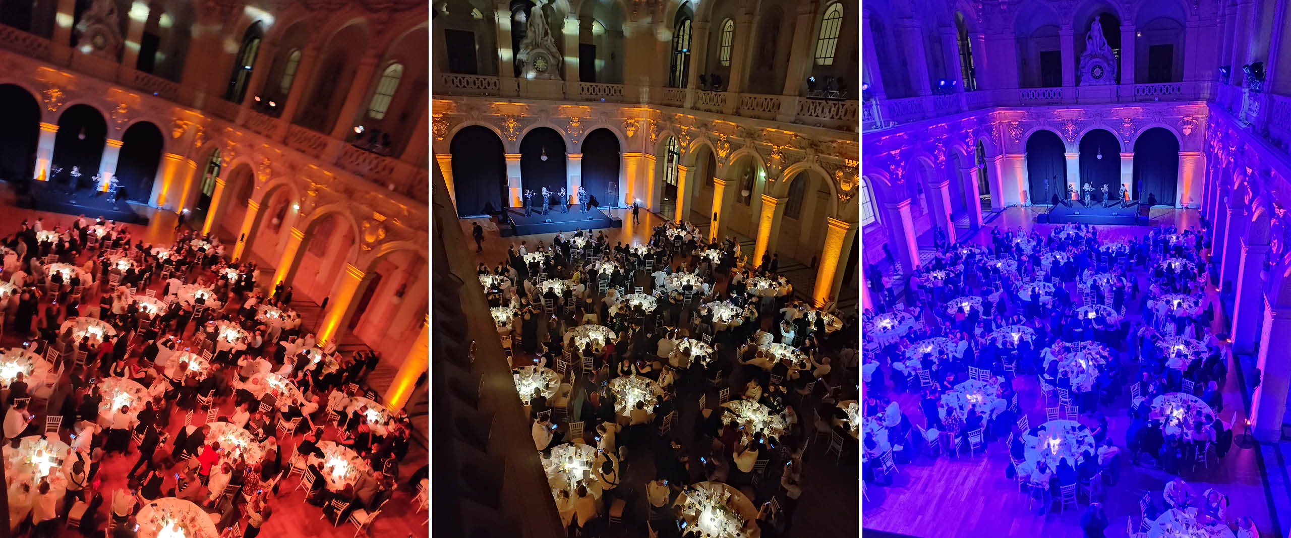 Les équipes ont mis en place l’éclairage et la sonorisation au Palais de la Bourse de Lyon.